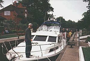 As you approach the lock slow down and make sure the fenders are in place. If the lock gates are closed you will have to pull into the lay-by, if they are open, watch the lock-keeper. He will signal which side of the lock you are to go. Then all the skipper has to do is to control the boat as the crew hopefully throw the lines over the bollards. But don't worry, at the height of the season there is often a Summer Assistant to take the rope from you. Don't fasten off the lines, hold them so you can adjust as the boat rises or falls in the lock. The skipper should switch off engines. |
