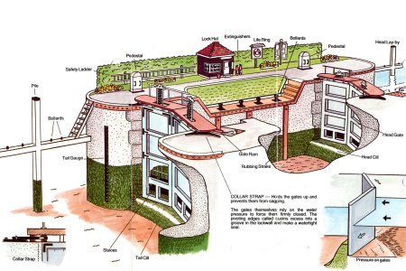 A Simplified Cutaway Diagram of an Electro-Hydraulic Lock on the River Thames |