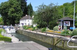 There are 44 locks on the Non tidal Thames. The first upstream lock is St John's at Lechlade shown here, which is 73.10m above sea level. The final one downstream is Teddington which is only 4.30m above sea level. |