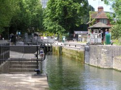 The first pound lock dates from 1790 when a stone lock was built for the Thames Navigation Commissioners. The first lock keeper's house was built in 1791. New gates to the lock were fitted by the Thames Conservancy in 1867. A new weir and channel was constructed by Thames Water Authority in 1979. |