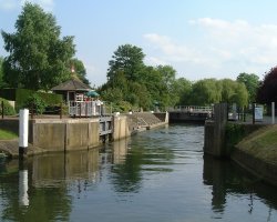 The Corporation of the City of London built the first pound lock here in 1813 but in 1825 it had to be extensively repaired and in 1829 it was enlarged. A new lock was built by the Thames Conservancy in 1899 which was mechanised by them in 1963. This is one of the locks on the Thames that has public power available when the lock is being operated outside normal opening hours. |